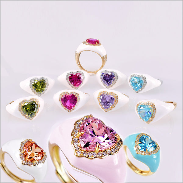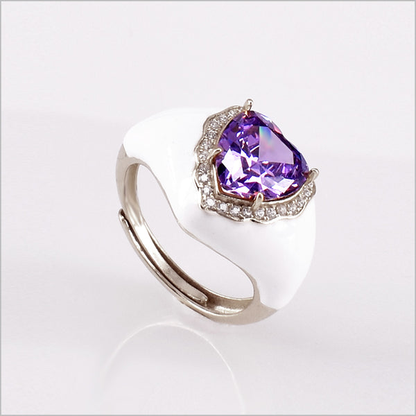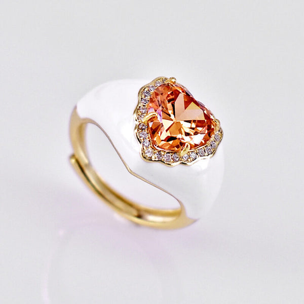 Anello cuore in argento regolabile smaltato con zirconi