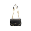 Borsa a spalla con tracolla in catena e similpelle che ne permette la doppia portabilità arricchita con dettagli di piccoli cinturini dorati.