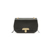 Borsa a spalla in morbida di colore nero, dal design allungato ed essenziale. Caratterizzata da una patta con chiusura girello dorata con logo inciso, è dotata di spallaccio regolabile e portabile anche a tracolla che ne permette la doppia personalità. Le linee pulite e il colore neutro la rendono un accessorio versatile, perfetto per completare con eleganza i look di ogni giorno.