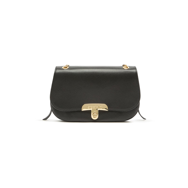 Nuova linea che entra a far parte del fantastico mondo Braccialini è Michelle: in morbida pelle di vitello grana dollaro, dal design elegante e femminile. Le linee arrotondate e i soffietti laterali donano struttura e volume, mentre la patta frontale è impreziosita da un esclusivo accessorio girello dorato con logo inciso. Disponibile in cinque varianti colore, è il modello ideale per completare look da giorno o da sera con un tocco raffinato.