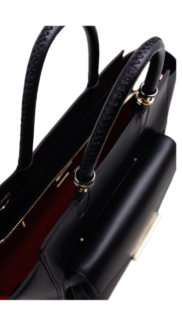 BORSA TOTE IN VITELLO LISCIO DOTATA DI MINIBAG SGANCIABILE CON TRACOLLA A CATENA. IL MANICO TUBULARE È ARRICCHITO DA ANELLI GIOIELLO MULTI-SFACCETTATI DI DIFFERENTI GALVANICHE. MINI CHIUSURA IN METALLO DI FORMA RETTANGOLARE ORIZZONTALE CON INCISO IL LOGO CROMIA. ACCESSORI ORO CHIARO.