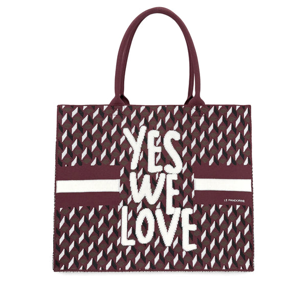 Shopping Grande Bella è l'accessorio perfetto per completare il tuo look con semplicità e carattere. Quote "YES WE LOVE" Shopping bag di grandi dimensioni in tessuto jacquardato Motivi geometrici ...