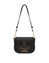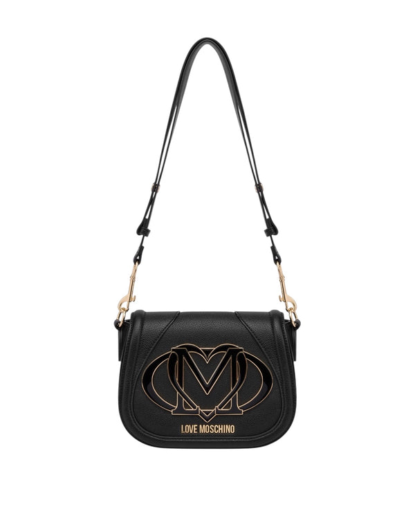 Chic e contemporanea questa borsa a tracolla di Love Moschino unisce stile e praticita'in un unico accessorio.Realizzata in ecopelle nera martellata e'impreziosita dal grande logo frontale a cuore con la M dorata simbolo iconico del brand.