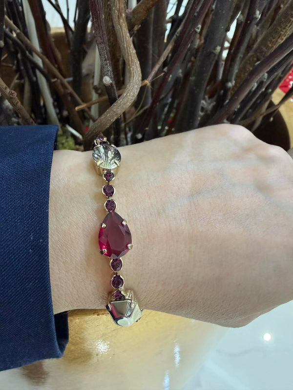 Bracciale morbido con strass e pietre sfumato in viola