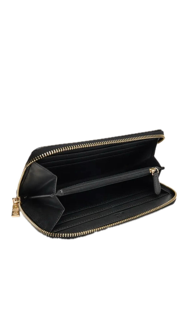 Portafoglio zip around in ecopelle bottalato con logo piccolo in metallo oro.