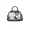 Bauletto a mano in similpelle nera con doppio manico. Il design ironico e romantico è impreziosito da una tenera stampa con cuccioli, cuori glitterati e scritte ricamate che raccontano una dolce storia d’amore. La tracolla removibile e regolabile consente una doppia portabilità, perfetta per accompagnare ogni momento con un tocco di allegria.