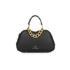 Bauletto in simil pelle di colore nero con doppi manici, la tracolla logata removibile regolabile che ne permette la doppia portabilità. Adoranata dalla scenografica maxi catena dorata removibile che aggiunge versatilità e un tocco glam al modello. Il logo Braccialini frontale completa il design con eleganza. Una borsa dal carattere deciso, perfetta per chi cerca un accessorio sofisticato ma contemporaneo.