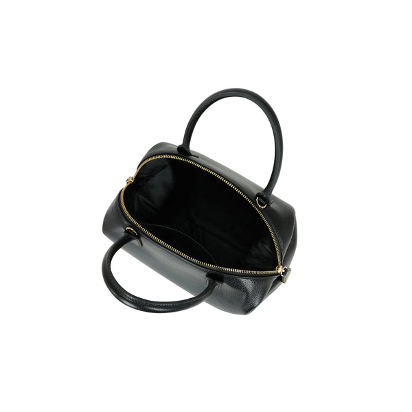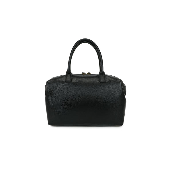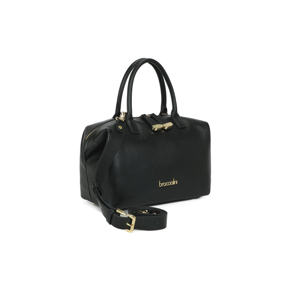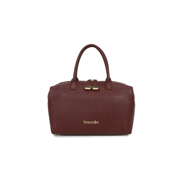 Bauletto in pelle, con doppi manici e tracolla removibile e regolabile per una doppia portabilità. Dotata di chiusura con doppia zip in metallo dorato, presenta un design pulito e strutturato, ideale per l’uso quotidiano. All’interno, una pochette estraibile utilizzabile come seconda borsa. Un modello essenziale e raffinato, perfetto per chi cerca praticità senza rinunciare all’eleganza.