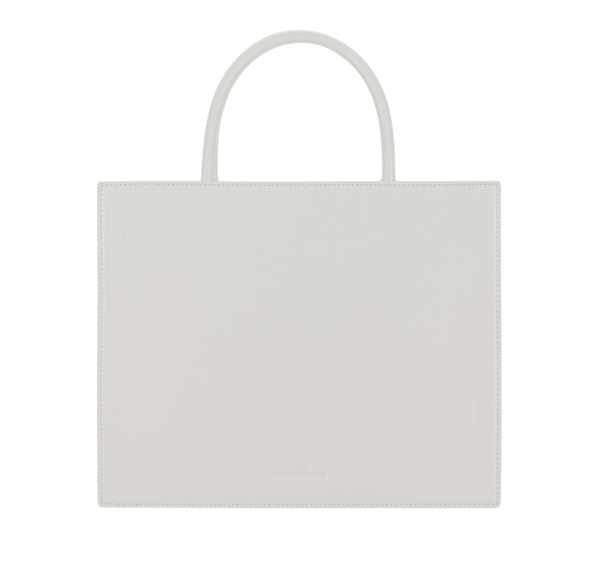 Borsa tote grande realizzata in materiale sintetico effetto pelle con doppio manico tubolare. Dalla shape compatta ed essenziale, ha logo impreziosito da profili luminosi che aggiungono una nota sofisticata.
