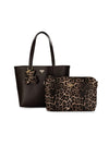 Borsa modello shopper con doppio manico a spalla all'interno una maxi pochette estraibile che diventa anche una tracolla .Rivestimento interno e pochette maculata