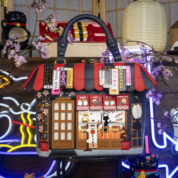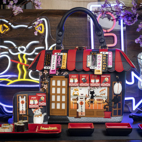 Siamo troppo entusiasti di presentarti la Borsa a Mano Vendula Sushi - Blue Edition! Rivisitata in un’elegante tonalità blu marino, questa borsa in pelle vegana dona un tocco di freschezza e originalità al tuo guardaroba autunno/inverno. Puoi portarla per il manico o usare la cinghia regolabile per indossarla a spalla o a tracolla. È provvista di una chiusura a fermaglio per una maggiore sicurezza, di un comparto spazioso e di diverse tasche per tenere in ordine i tuoi oggetti essenziali. Ispirata al fermento delle notti di Tokyo, la sua grafica vivace e i dettagli a tema culinario faranno venire l’acquolina in bocca a te e a chiunque ti veda. Chi ha fame di stile?