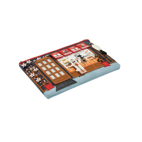 Mantieni la calma e porta con te il sushi! La Borsa Kate Vendula Sushi - Blue Edition è la soluzione perfetta per ogni occasione, capace di contenere tutto l’essenziale! Questa borsa compatta ma versatile, realizzata in pelle vegana, può essere indossata a spalla, a tracolla o utilizzata come pochette o beauty case. Offre un comparto spazioso, alcune tasche e una scena rilassante di un ristorante di sushi giapponese, con fontane zen e ciliegi in fiore. Non importa se la indossi per delle commissioni nei giorni feriali o per il brunch del fine settimana, questa borsa aggiunge un tocco di serenità a ogni momento.