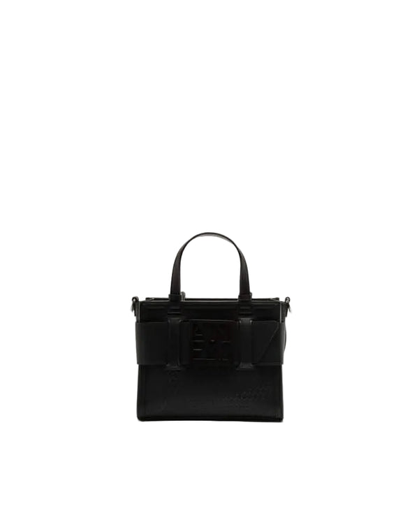 Borsa Armani Exchange in similpelle effetto traforato con logo metallico sul davanti.