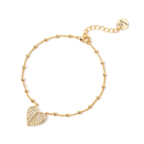 Rendi speciale qualunque outfit con questo ricercato ed esclusivo bracciale. Design luminosissimo con splendente e sottile catena che incorpora delle mini-boule e converge su un brillantissimo cuore impreziosito da pavè di zirconi dai riflessi inebrianti. Un accessorio perfetto per un look impegnato o per quando vuoi tu, in una versione dalle cromie delloro. Targhetta Momenti sullestensione.