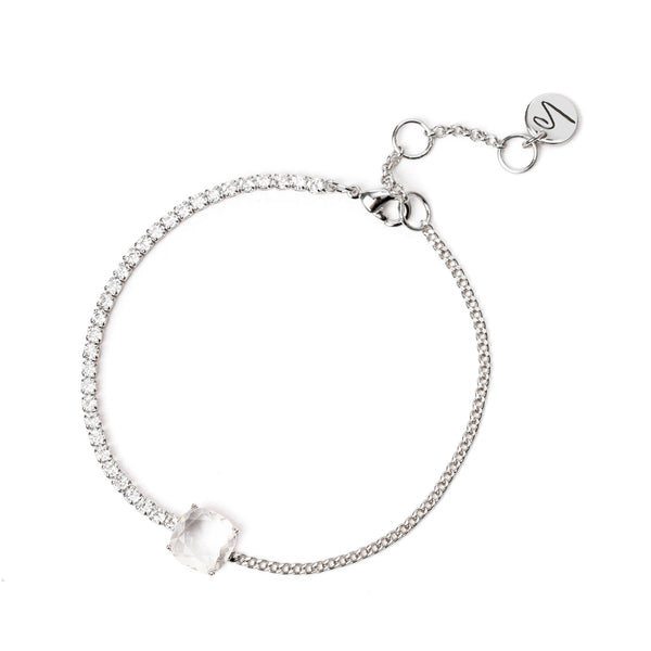 Regalati un gioiello dallo stile raffinatissimo e senza tempo con questo splendido bracciale. Design a due lati, uno con brillante filo di cristalli in cupchain, laltro con splendente catena groumette, che si incontrano su un grande cristallo centrale aggiungendo splendore al tuo look. Un accessorio prezioso in una versione dalle cromie dellametista e rodio, per un look che non passa inosservato. Con targhetta Momenti sull'estensione.