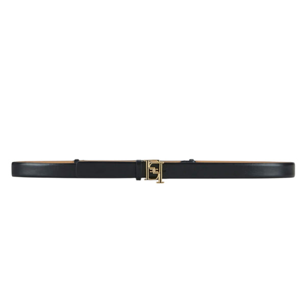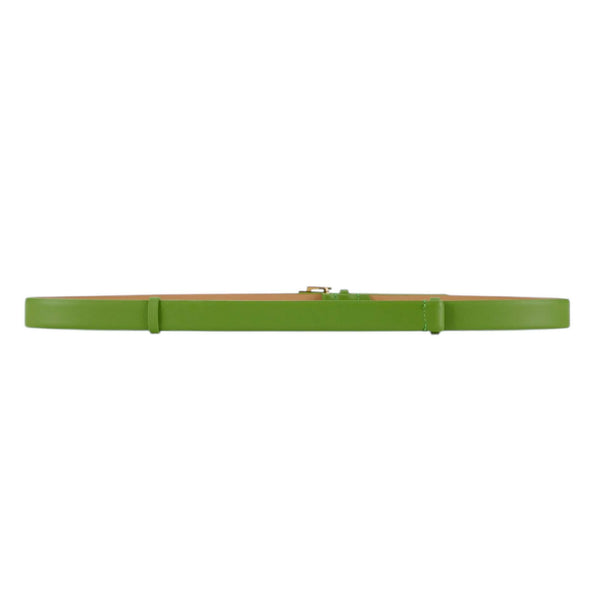 Cintura a vita regolare realizzata in pelle. Sottile, dalla texture liscia e leggermente bombata, è impreziosita dalla fibbia con logo in metallo dorato e smaltato internamente.