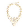 Un affascinante girocollo che afferma il tuo stile sofisticato e contemporaneo. Design a bavaglino luminosissimo e ammaliante con catena e sezione frontale composti da fiorellini filiformi dai riflessi che incantano. Un accessorio perfetto per un look impegnato o per quando vuoi tu, in una versione dalle cromie delloro. Logo Sodini sullestensione.
