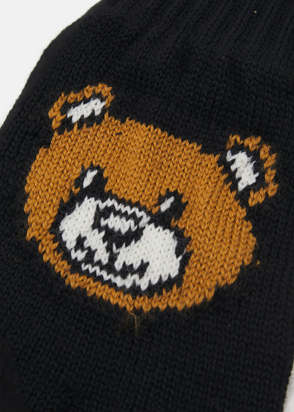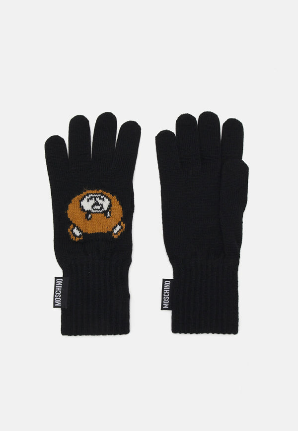 Guanti in lana moschino colore nero con orsetto teddy.