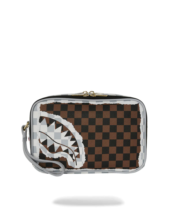 POCHETTE SPRAYGROUND 8294 CREAM AND BROWN TEAR CHECK TOILETRY BAG POCHETTE SPRAYGROUND 8294 CREAM AND BROWN TEAR CHECK TOILETRY BAG