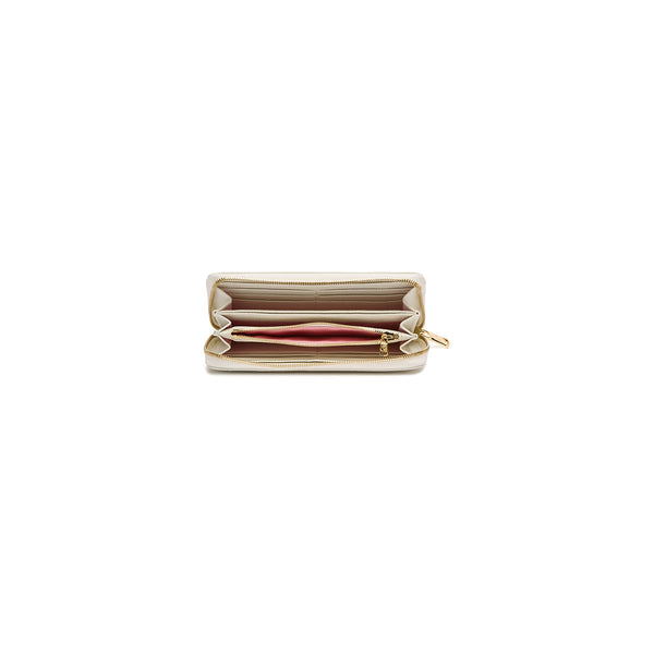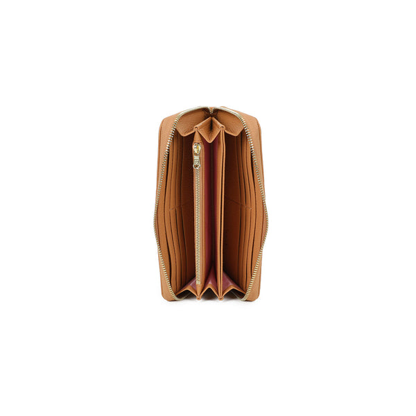 Portafoglio modello zip around in pelle con logatura dorata frontale. Una tasca interna con zip per la moneta