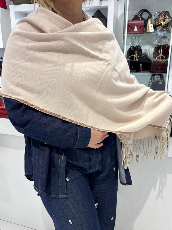 Sciarpa lunga con frange, un classico intramontabile, perfetta per uso giornaliero.