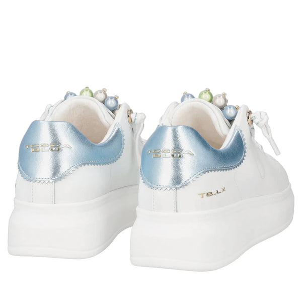 Sneakers Tosca Blu SS2601S003 Astrid in pelle con perle bianche/azzurre Sneakers Tosca Blu SS2601S003 Astrid in pelle con perle bianche/azzurre