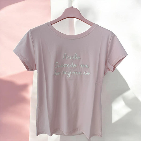 T.SHIRT DONNA MONOCOLORE CON SCRIITA RICAMATA.