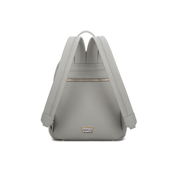 Zaino compatto e originale perfetto per chi ama distinguersi con ironia e stile. Il modello è decorato con una stampa ispirata a Londra, con l’iconico Big Ben sullo sfondo e un’esuberante applicazione di Daffy Duck in primo piano. Arricchito da dettagli glitter e strass, dona un tocco brillante e giocoso. Dotato di spallacci regolabili, manico superiore e chiusura con zip doppio cursore, è pratico e ideale per un look urbano con carattere.